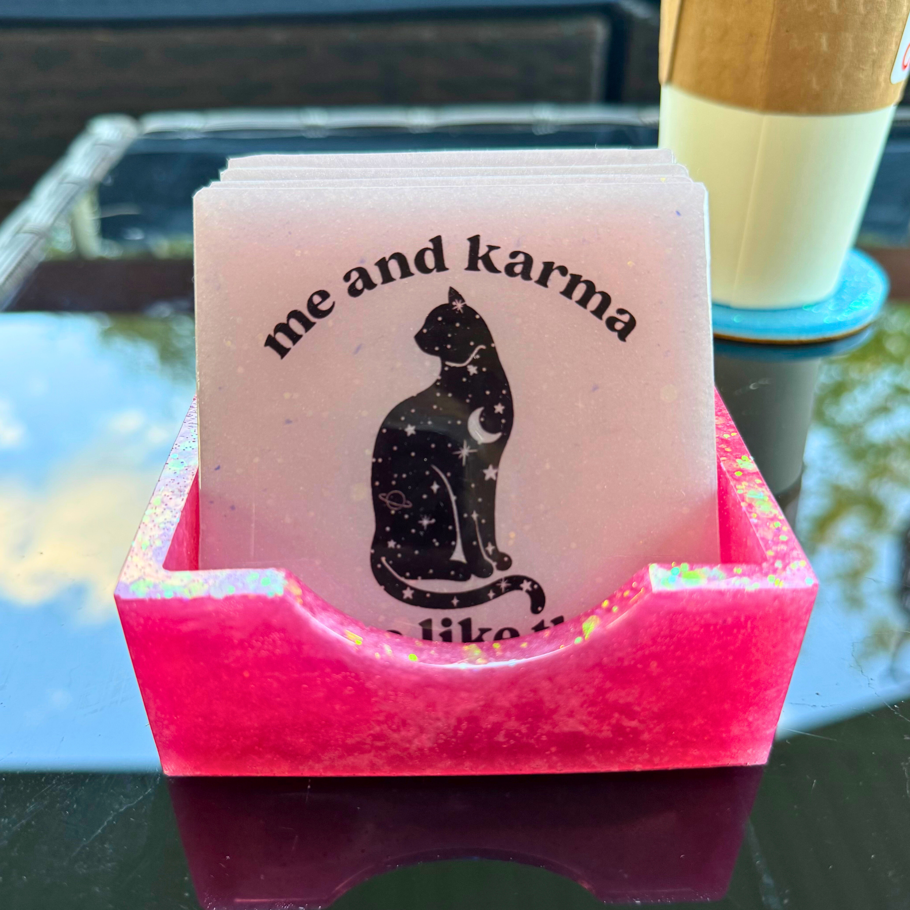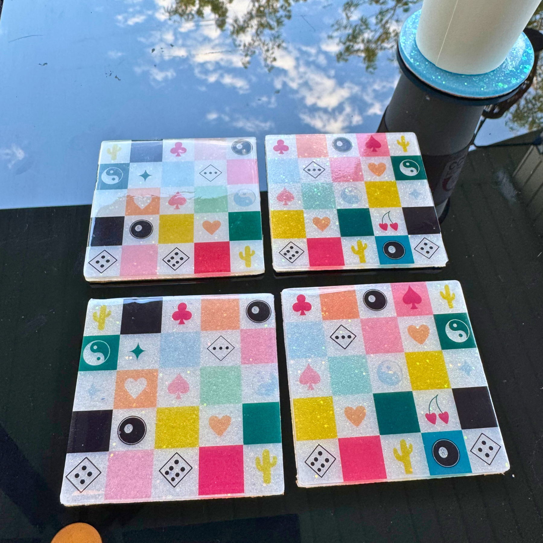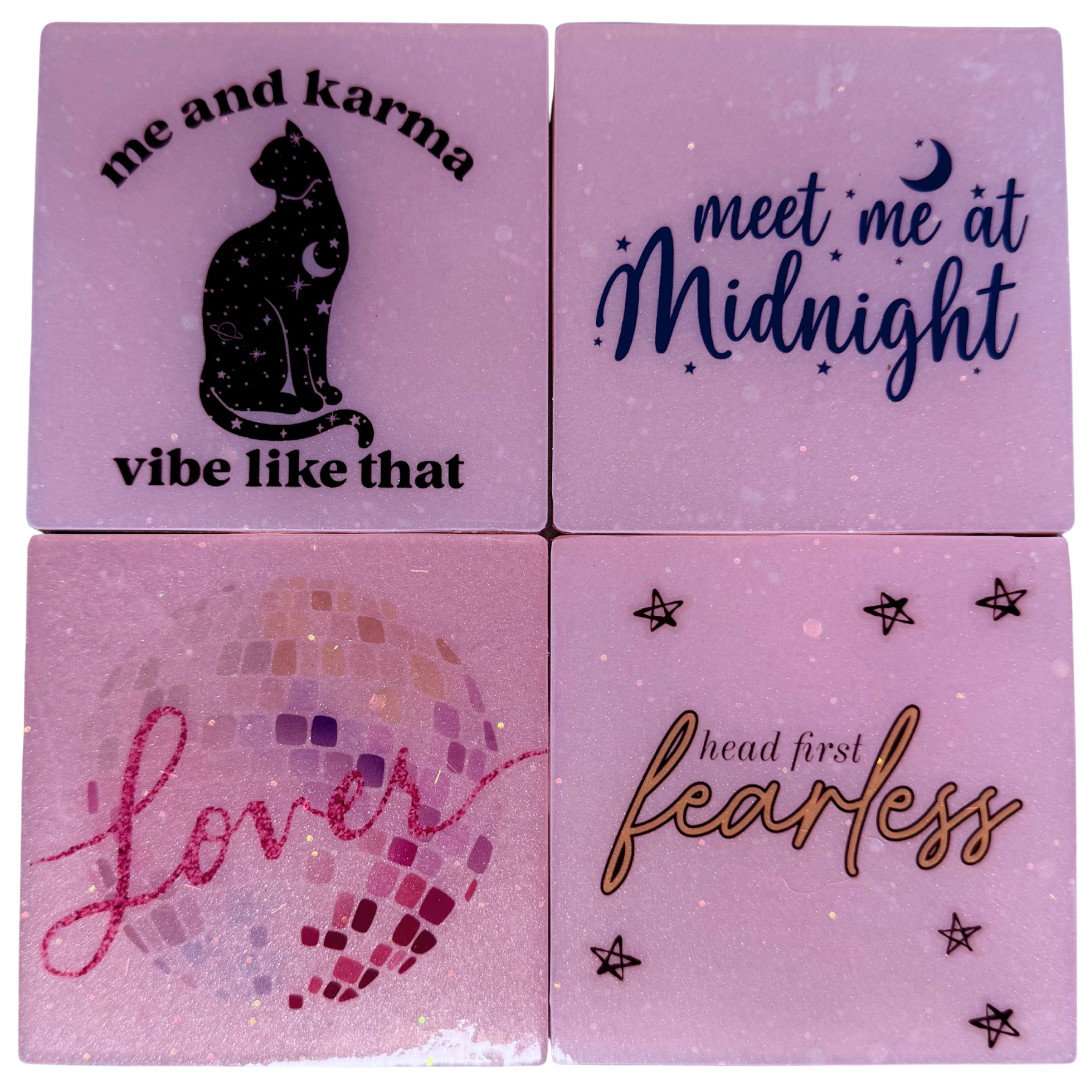 Create a set that’s uniquely yours! Upload an image of your family, pet, or favorite design (PNG or JPG) to support@shopnoshampoo.com, and I’ll hand-make your custom coasters with a sparkling, glass-like finish.